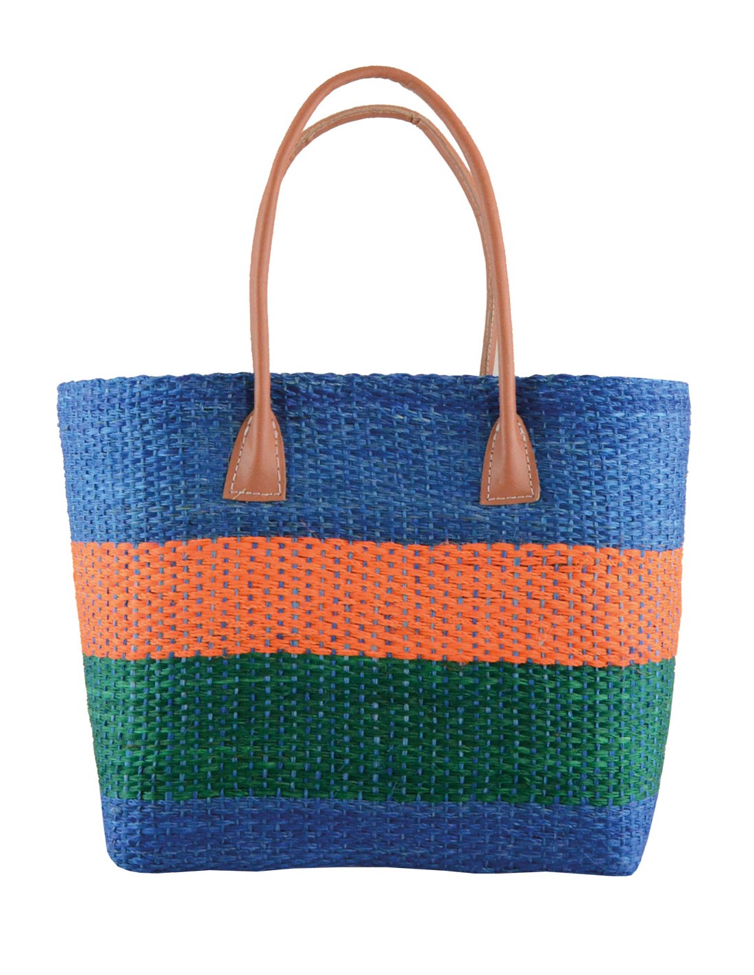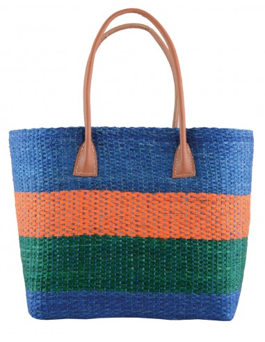 Χειροποίητη πλεκτή τσάντα Μαδαγασκάρης Sisal, με επένδυση ψάθας και δερμάτινα χερούλια.
