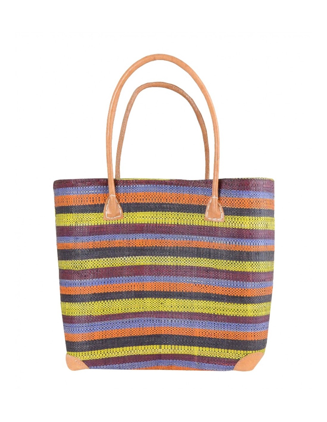 Χειροποίητη πλεκτή τσάντα raffia, με επένδυση ψάθας, δερμάτινα χερούλια και δερμάτινες γωνίες