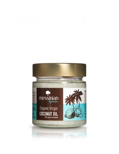 Το Messinian spa πιστοποιημένο βιολογικό έλαιο καρύδας λαμβάνεται μέσω συμπίεσης της σάρκας της καρύδας. Περιέχει μεγάλο αριθμό χρήσιμων συστατικών, όπως λιπαρά οξέα, βιταμίνες Β, C, E, ασβέστιο, ψευδάργυρο, σίδηρο, φυσικά αντιοξειδωτικά και πολλά άλλα, γεγονός που καθιστά το λάδι έναν εξαιρετικό ενυδατικό, αναζωογονητικό και καταπραϋντικό παράγοντα. Είναι κατάλληλο για τα μαλλιά, το πρόσωπο, το σώμα, όλους τους τύπους δέρματος και τις επιρρεπείς στους ερεθισμούς επιδερμίδες, αποτρέπει την ξηρότητα του δέρματος, βοηθά στην καταπολέμηση των ραγάδων, θρέφει το ξηρό, σκασμένο δέρμα και χείλη, καταπραΰνει το ερεθισμένο δέρμα, τιθασεύει τα μαλλιά που φριζάρουν, βοηθά στη μείωση δημιουργίας ψαλίδας. Μπορεί να χρησιμοποιηθεί για αφαίρεση του μακιγιάζ του προσώπου και των ματιών, για φροντίδα μετά τον ήλιο, ως κρέμα μετά το ξύρισμα, ως λάδι για μασάζ ή στο μπάνιο, ως μάσκα μαλλιών, ως λάδι μαυρίσματος, ως ενυδατική κρέμα προσώπου και σώματος, ως προϊόν φροντίδας για μωρά. Η υφή του είναι πολύ ευχάριστη, σαν βελούδο, και έχει ένα υπέροχο, ξεχωριστό άρωμα.