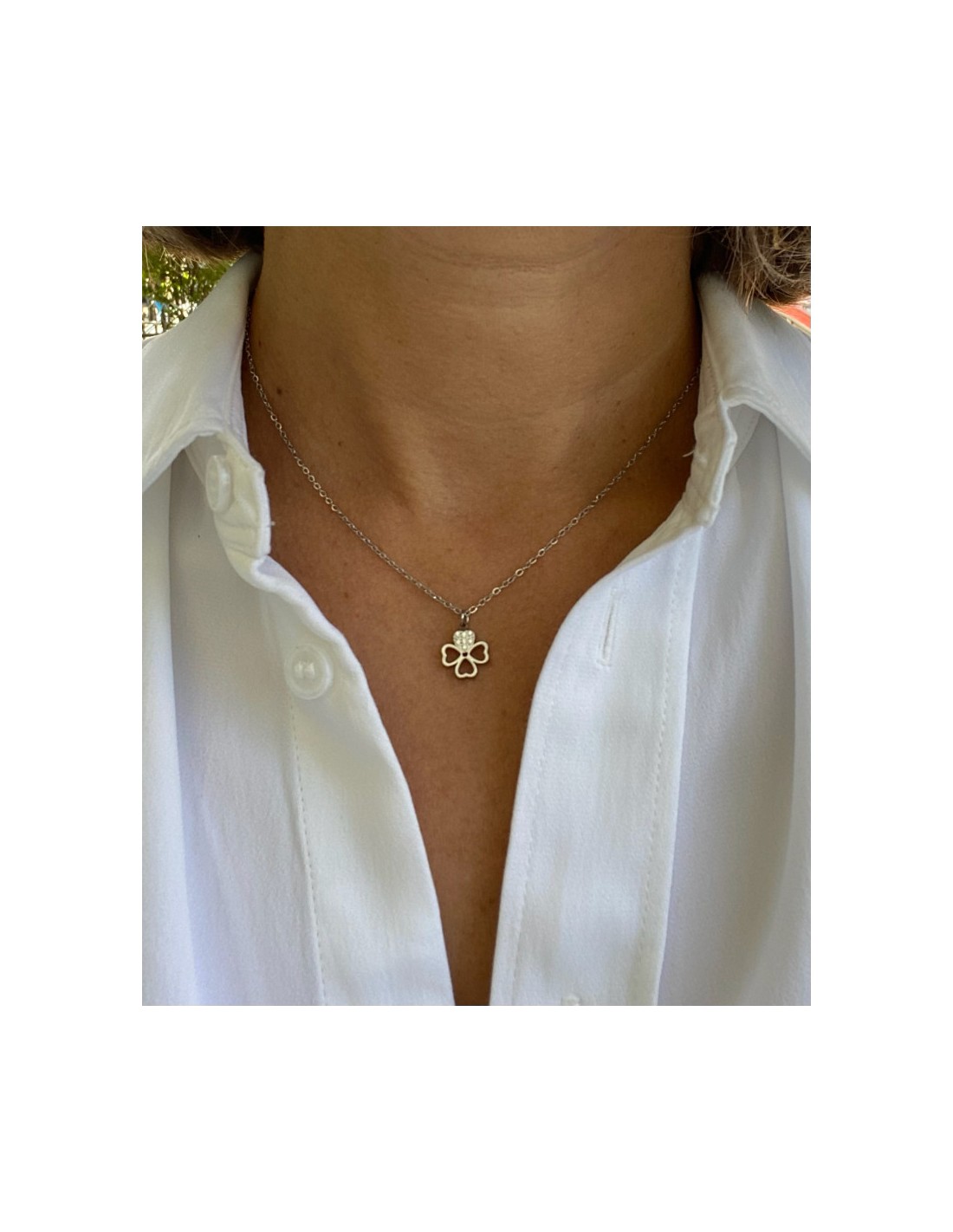 Αυτό το ατσάλινο κολιέ σε ασημένια/χρυσή απόχρωση διαθέτει ένα κομψό μενταγιόν σε σχήμα σταυρού με διακριτικές πέτρες στο κέντρο. Ιδανικό για να προσθέσετε μια ρομαντική και εκλεπτυσμένη πινελιά στο στυλ σας, είναι ιδανικό για καθημερινή χρήση και ιδιαίτερες περιστάσεις.
