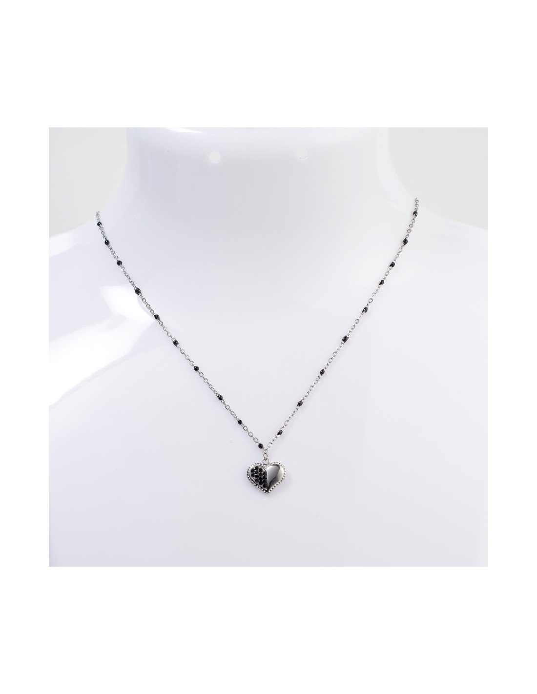 Ασημένιο ατσάλινο κολιέ με καρδιά και μαύρες λεπτομέρειες για μοντέρνα ρομαντική πινελιά.