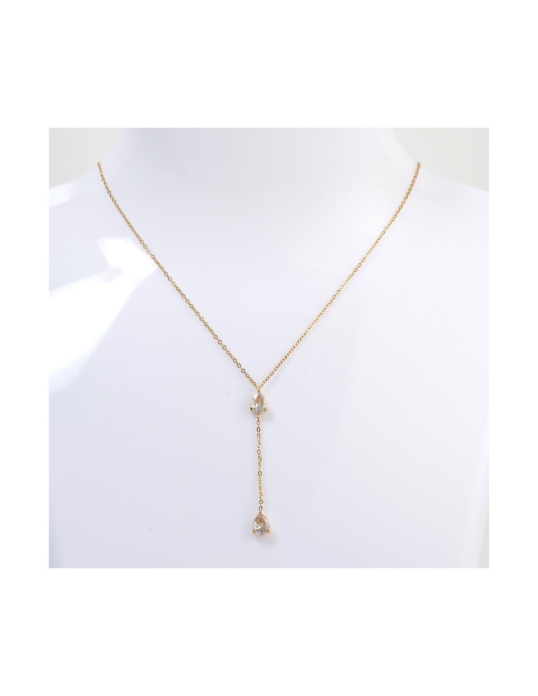 Χρυσό ατσάλινο κολιέ με διπλή σταγόνα για διακριτική πολυτέλεια και κομψότητα.