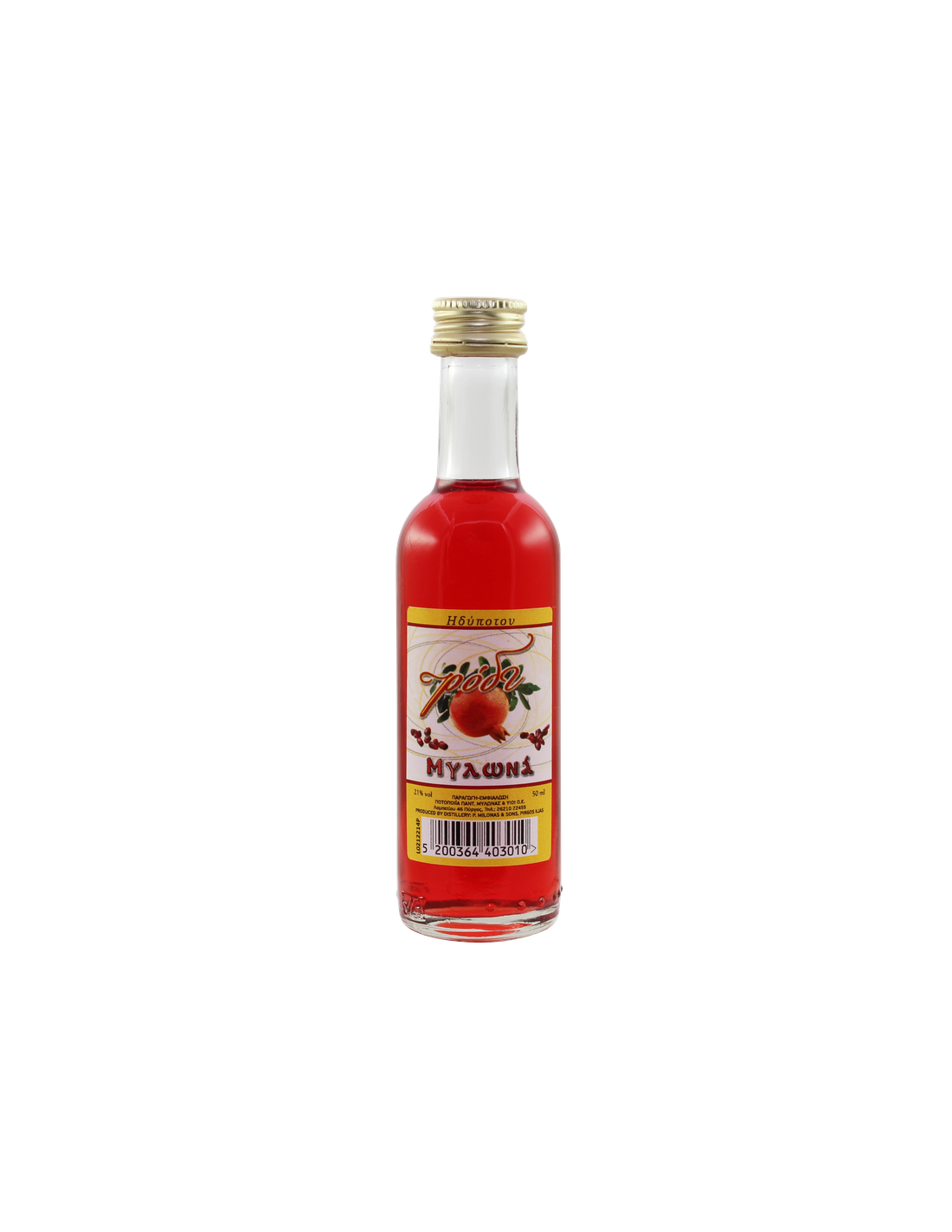 Ηδύποτο με έντονη γεύση από εξαιρετικούς καρπούς ροδιού. Το ρόδι αποτελεί βασικό στοιχείο της Μεσογειακής διατροφής λόγω των εκπληκτικών θεραπευτικών και αντιοξειδωτικών ιδιοτήτων του. Οι καρποί του είναι στενά συνδεδεμένοι με την ελληνική παράδοση και τις ευχάριστες στιγμές της ελληνικής ζωής αφού προσφέρει υγεία και ευεξία αλλά αποτελεί και δείγμα καλής τύχης. Ο συμπυκνωμένος χυμός του μας δίνει την γνωστή γρεναδίνη. Πίνεται κυρίως παγωμένο.